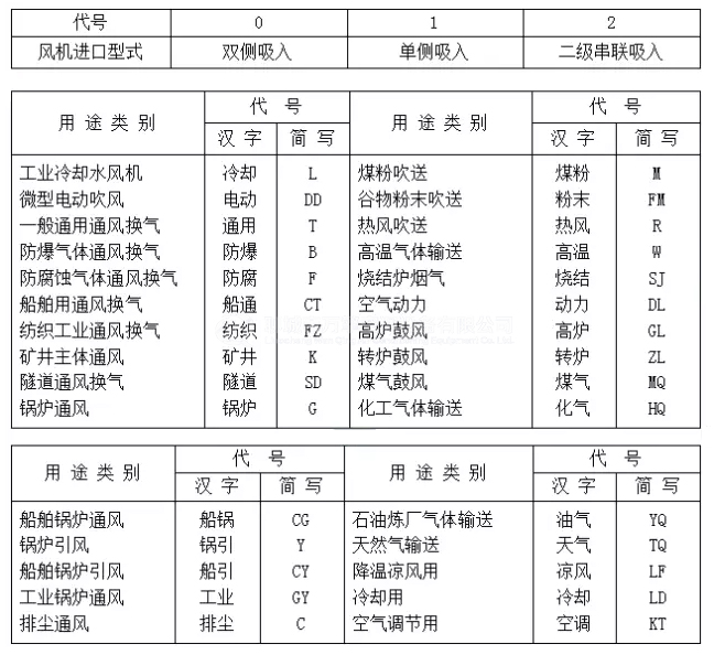 為了區(qū)別采用相同的基本型號而用途不同的風機、在基本型號前可冠以用途代號(表2)